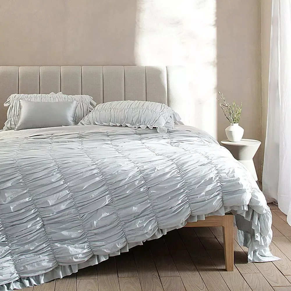 Una versión moderna de los juegos de cama clásicos, la colcha Verdant te transporta a un encantador viaje campestre.. Inspirada en elementos folclóricos, sus cortinas deconstruidas, volantes y estampados de lunares crean una pieza de una belleza impactante con un encantador toque rústico-chic. Extremadamente cómoda, su delicada textura de algodón puro deleita los sentidos, ofreciendo una suavidad inigualable para momentos de relax.